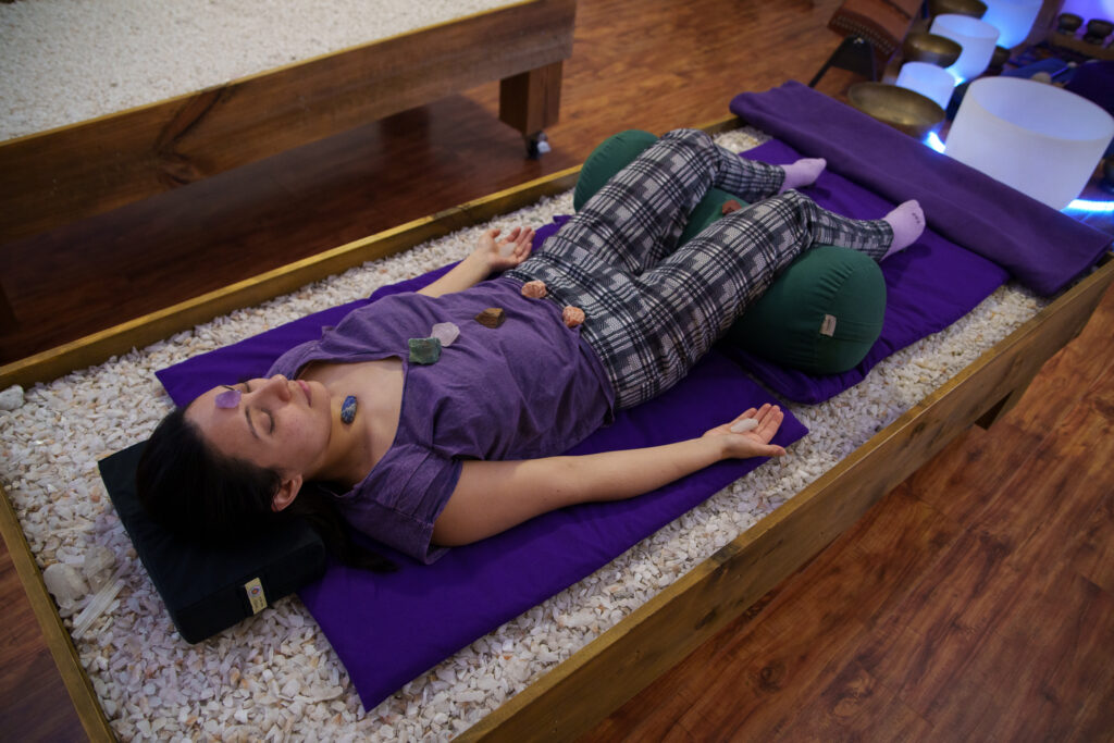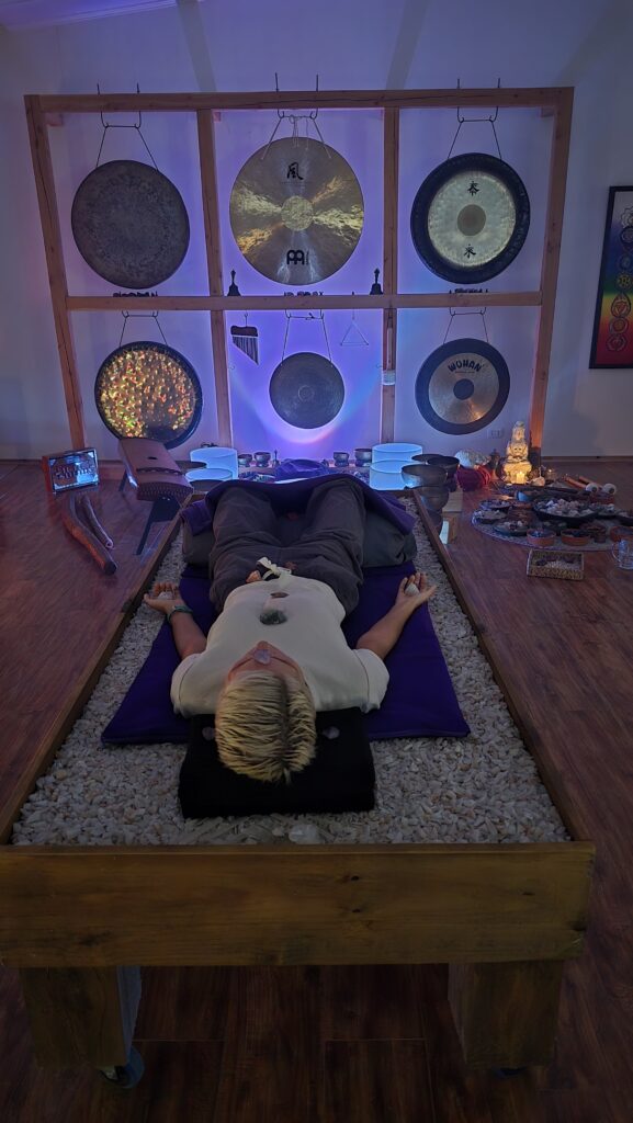 La sesión ofrece una experiencia terapéutica profunda que combina Sonoterapia en Camas de Cuarzo con otras herramientas de Sanación.